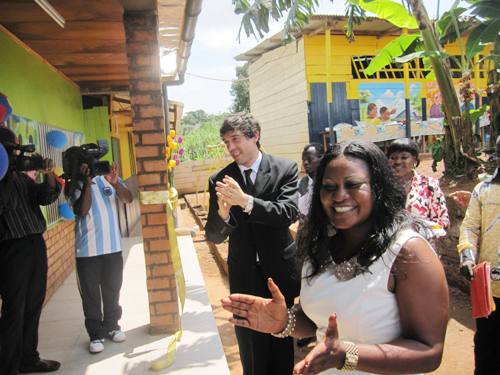 On Tuesday November 20, 2012, Political Officer Luke Ortega took part in a ribbon-cutting ceremony to inaugurate a classroom constructed under the Ambassador’s Special Self Help (SSH) Program. The classroom will serve orphans and children from low-income families enrolled in the Bitame Lucia Primary School, Nkolfoulou village, on the outskirts of Yaounde. The Cameroon Association for the Protection and Education of the Child (CAPEC) initiated this project on behalf of the community by applying to the Self Help Program for funds to construct the classroom. In February 2012, Ambassador Jackson signed a grant awarding 3,905,640 FCFA in Self Help Program funds for the project. The school has eight existing classrooms constructed from temporary materials (wood boards), that serve 255 pupils. The newly constructed classroom is the school’s first that uses permanent materials.